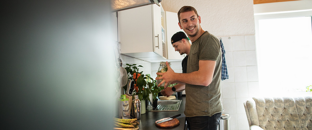 Raphael und sein Freund Sascha beim Kochen in der WG-Küche